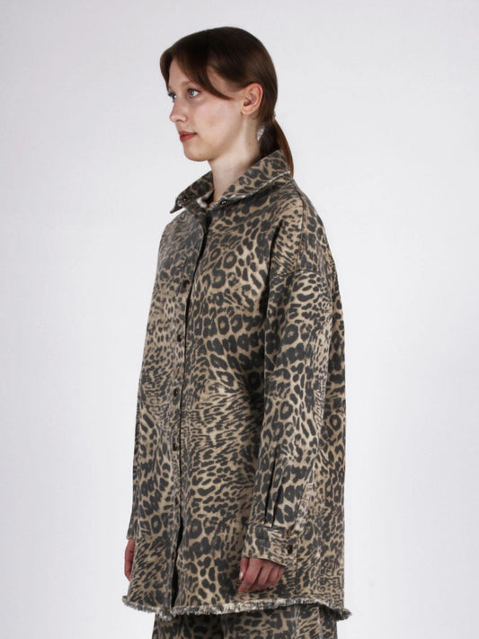 In offertaCAMICIA DENIM OVER ANIMALIER LEOPARD - BERNA